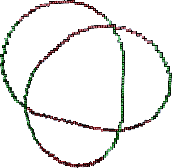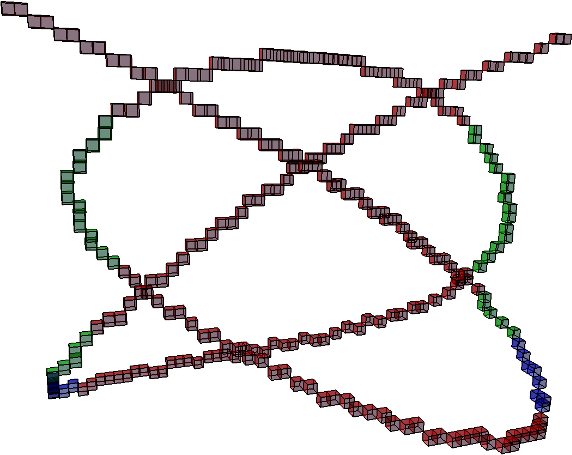 Input: a 3D parametric curve \( \gamma \) (model of C3DParametricCurve), sampling step \( t \), and a sampling interval \( [t_{min}, t_{max}] \) such that \( t \in [t_{min}, t_{max}] \). Optionally, the user may provide a search parameter \( K_{NEXT} > 0 \) that controls how 26-adjacent neighbors are found. By default \( K_{NEXT} = 5 \).