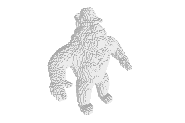 We will also play with some .vol file. There are a few in the directory DGtal/examples/samples. We pick below the Al Capone volume file. The program will also be parameterized by the threshold value on the volume file and the integers wp and wq, such that wp/wq is the tolerance used for decomposing the volume boundary into planes.