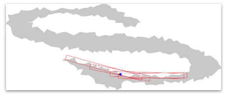 The implementation proposed here relies on the convex hull computed incrementally with the Melkman algorithm in linear time [88] (by using the MelkmanConvexHull class, see the module main documentation: Melkman's algorithm). It allows to add point on the front of the current segment and the value of vertical/horizontal thickness are computed in linear time by using the rotating caliper algorithm (see Convex hull thickness). The Buzer optimisation [84] to update the convex hull thickness with a coast of \(O(log\ n) \) or the linear time point substraction are not yet implemented. Note that you can use also the Euclidean thickness (see illustration below) also defined from the rotating caliper algorithm.