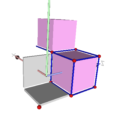 Cells of the cellular grid space are illustrated below. The paving mode of digital space gives a nice illustration of what is this space. The 2-cell is in red, the 1-cell in green, the 0-cell in blue.