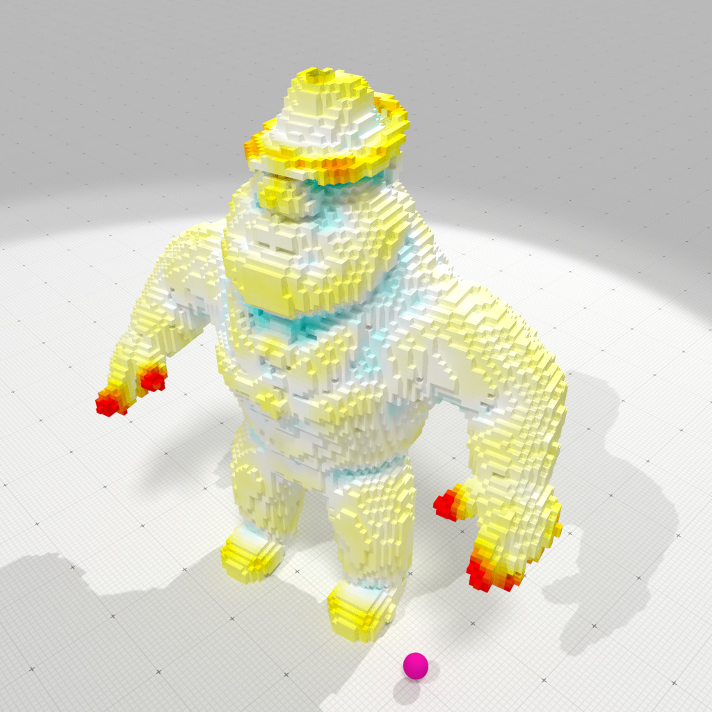 The theory of corrected normal currents works for arbitrary piecewise smooth corrected normal vector fields. Class CorrectedNormalCurrentComputer allows you to choose between a constant per face corrected normal vector field (called Constant Corrected Normal Current, CCNC), or a smooth corrected normal vector field obtained by linear interpolation of vertex normals per face (called Interpolated Corrected Normal Current, ICNC).