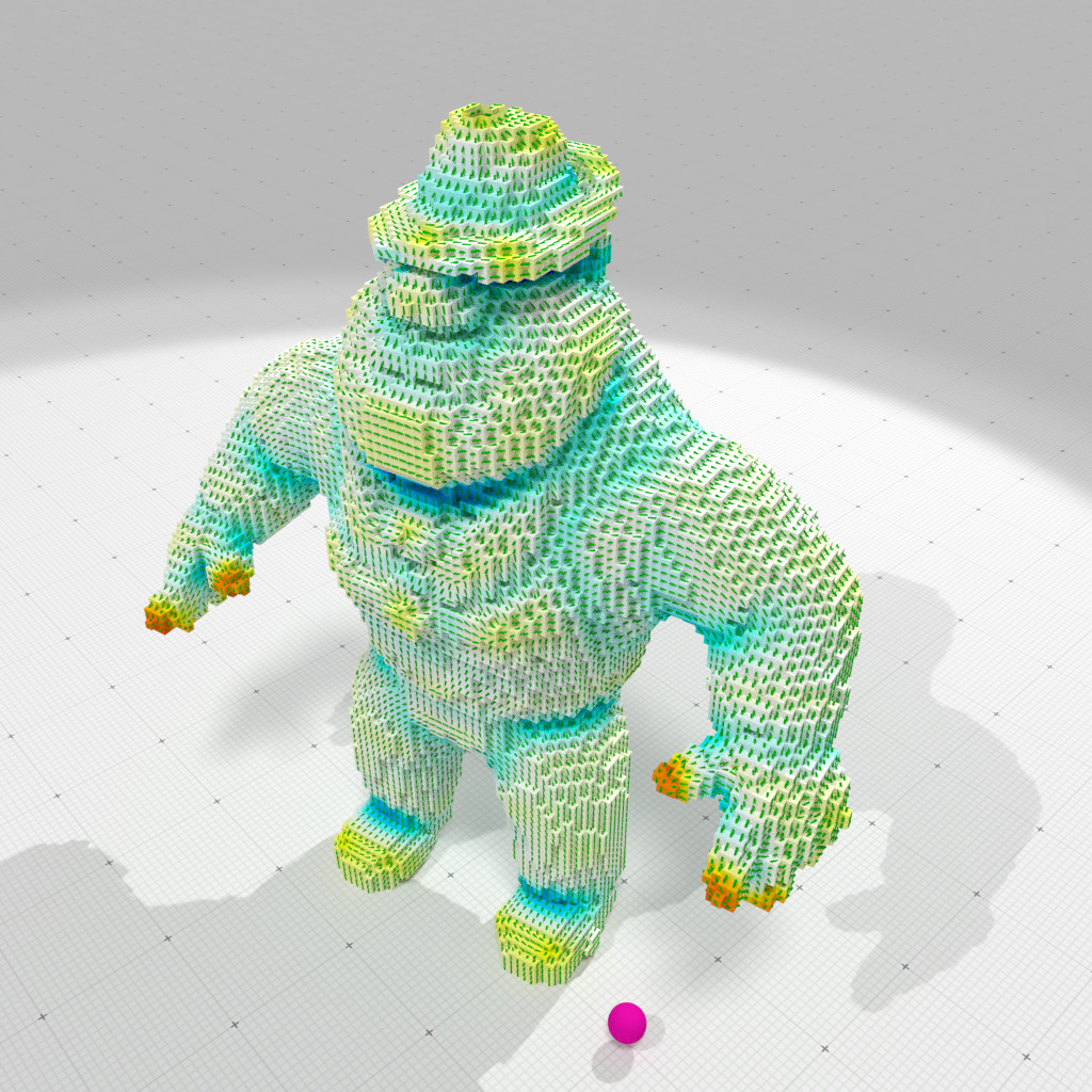 We build the Corrected Normal Current on this mesh, and use a digital estimator of the normal vectors (here convolved trivial normals) to set the corrected normal vector at each vertex.
