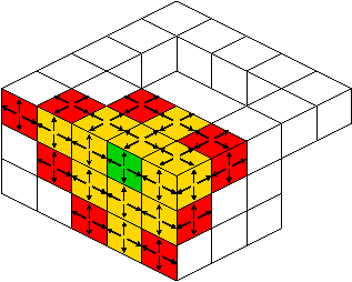 The following snippet shows the interior surfel adjacency (i.e. (6,18)-surfaces).
