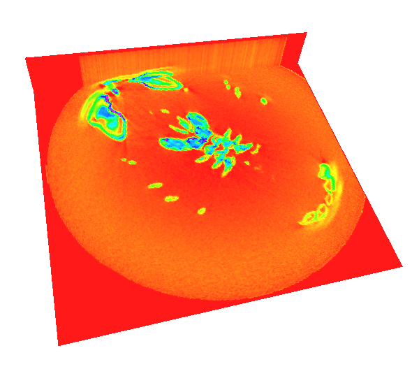 There exists a second mode where the light source position will be fixed according the main scene axis. In this case, even if the camera move, the light source will have the same position towards the object of the scene (see for instance images of mode 1 of the following tabular). As for the previous mode, the default light position could be changed interactively by a mouse move in the Viewer3D (with the key SHIFT+CTRL (SHIFT+CMD on mac)).