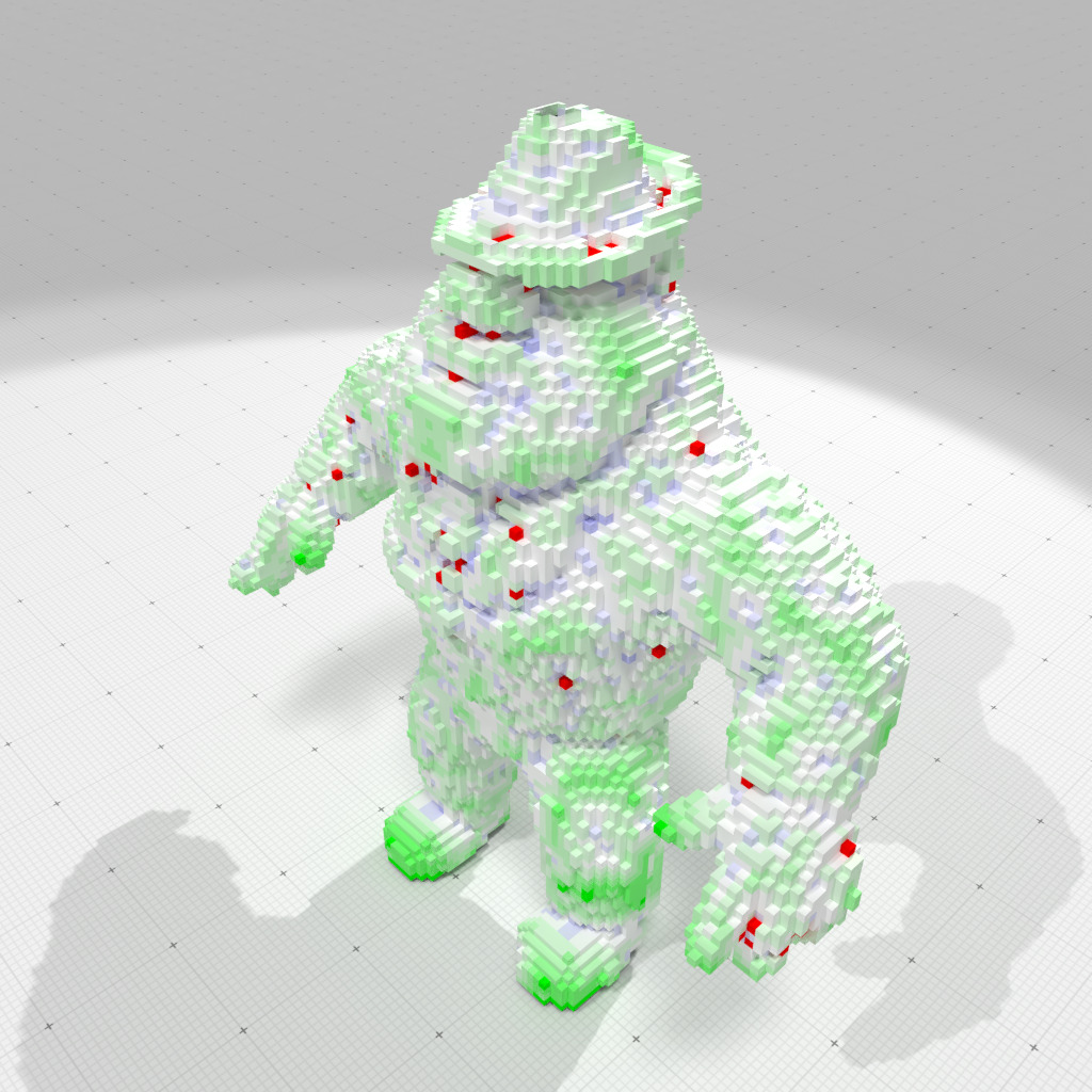 The result is saved in 'geom-scale-cvx.obj'. You will obtain images like below, where green means convex, blue means concave, white is planar and red is atypical (see [75] for details).
