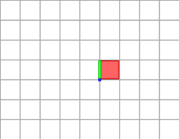Cells of the cellular grid space are illustrated below. The paving mode of digital space gives a nice illustration of what is this space. The 2-cell is in red, the 1-cell in green, the 0-cell in blue.