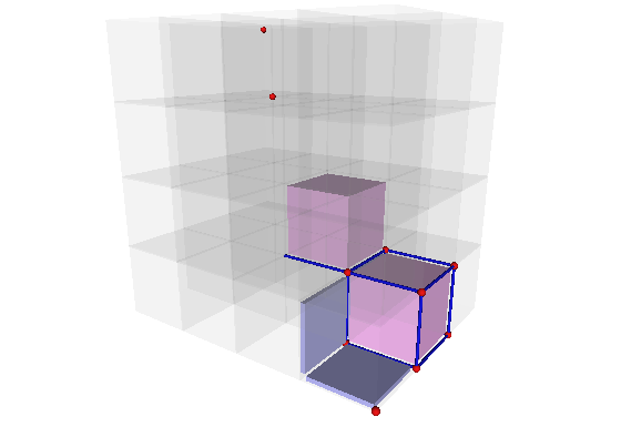 We therefore model not only n-dimensional cells (the hypercubes in nD), but also all the lower dimensional cells of the space. For instance, in 2D, we have: