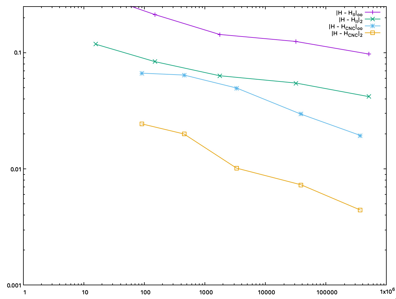 We run the tests on goursat polynomial surface, with digitization gridsteps \( h \in \{ 1, 0.5, 0.25, 0.125, 0.0625 \} \). Parameters are set up as follows: