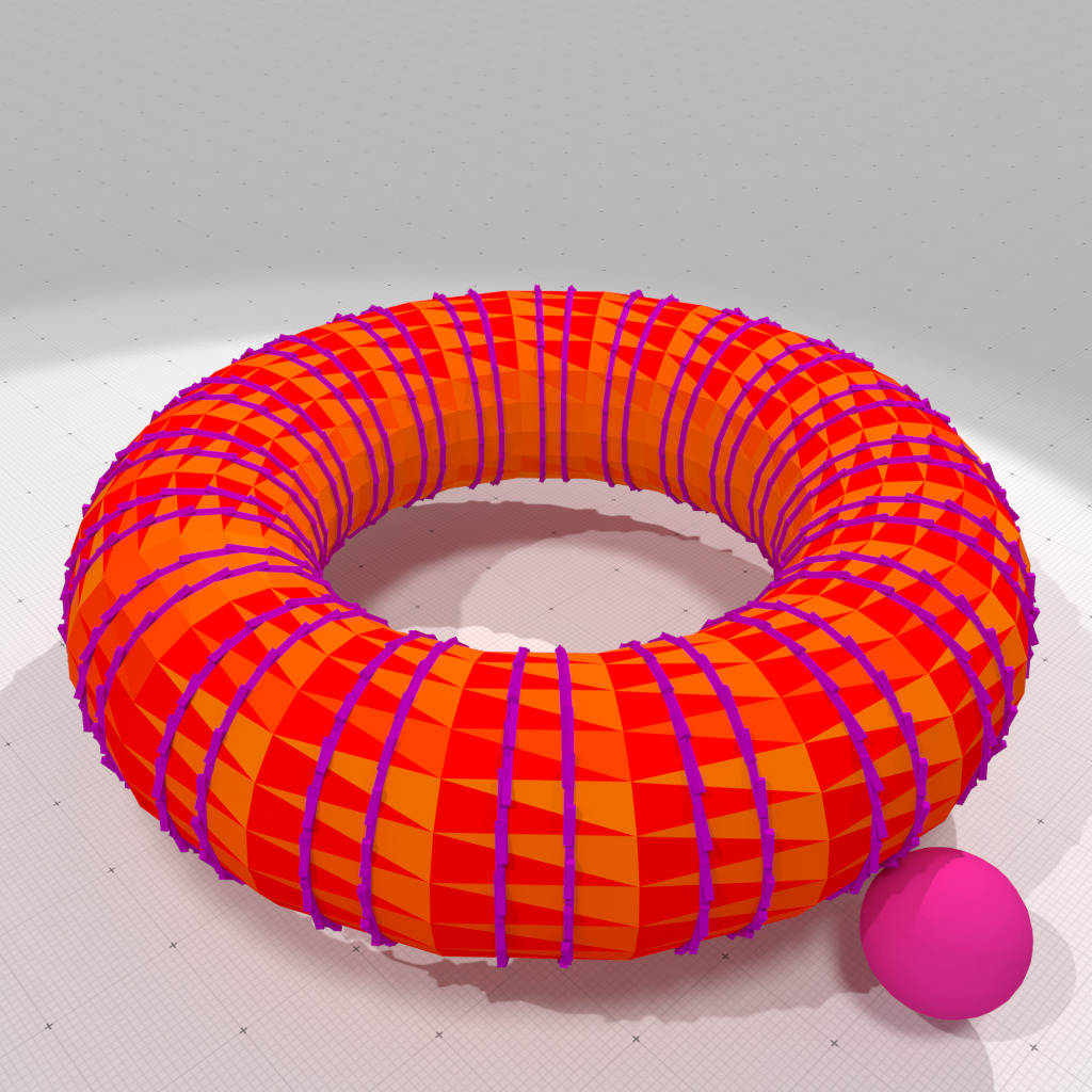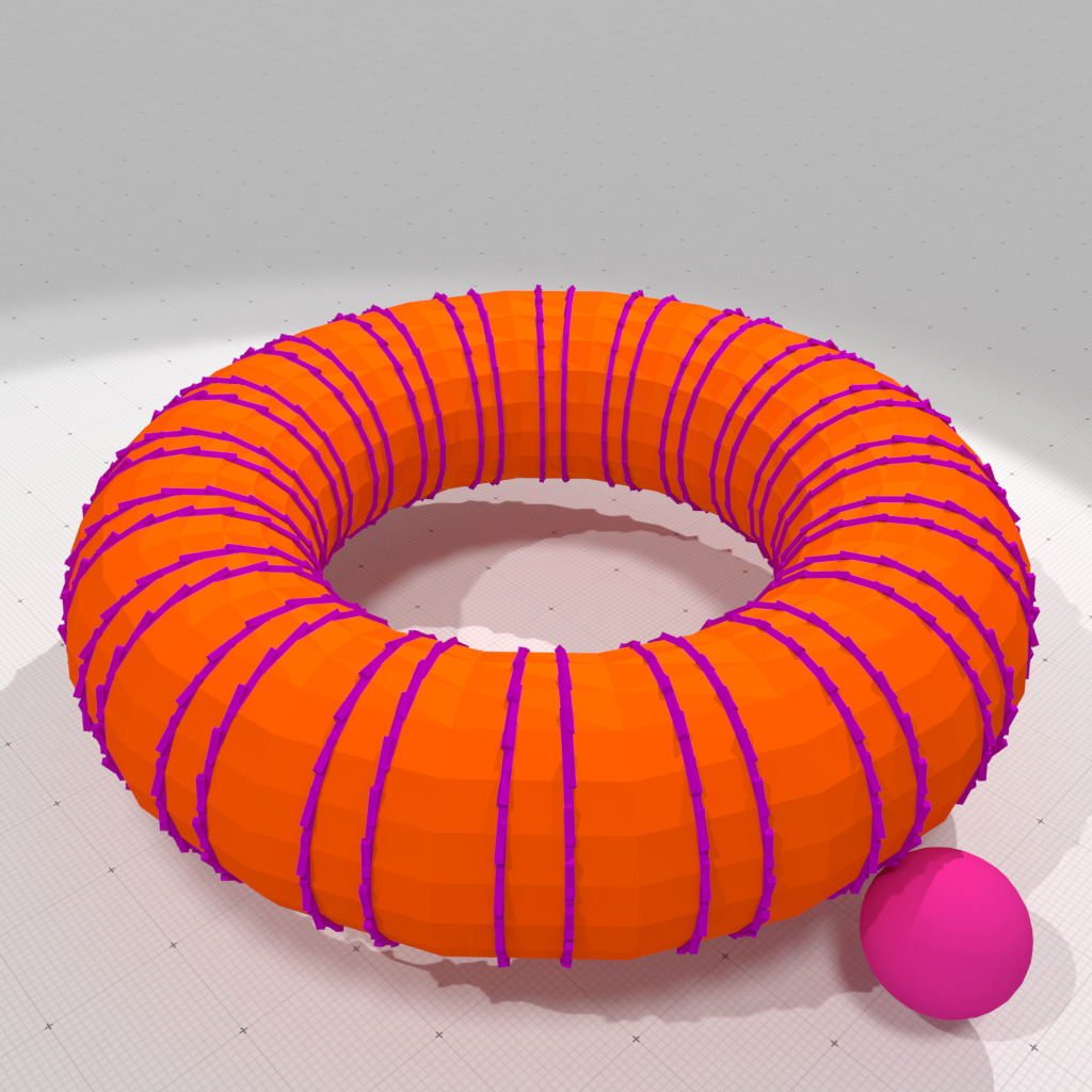 This is is the result for a measuring ball radius of 0.5 onto the torus shape (better than Normal cycle).