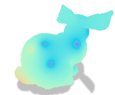 We want to solve that problem on a polygonal mesh \(\Omega\) (digital surface here) with a boundary and some scalar values attached to boundary vertices, or sampled on the object surface.