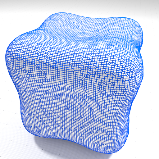 If \(P\) denotes the vertices of the input digital surface, \(F\) the set of (quadrilateral) faces and \(n_f\) an estimated normal vector on the face \(f\), we want the quad surface vertex positions \(P^*\) that minimizes the following energy function: