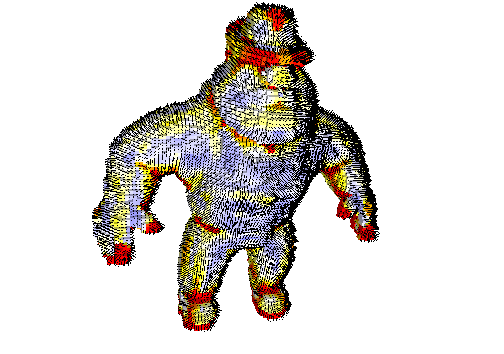 Example geometry/surfaces/dvcm-3d.cpp gives the full code for computing the \( \chi \)-VCM of an arbitrary digital surface, and then estimating the normal vector as well as detecting corners. Here is a small piece of code that extracts the VCM normal for each surfel.