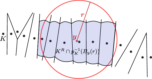 The Voronoi covariance measure (VCM) has been introduced in [89] for normals and curvature estimations. Let K be a compact subset of \(\mathbb{R}^3\) and \(d_K\) the distance function to K, i.e. the map \( d_K(x) := \min_{p\in K} \|p-x\| \). A point p where the previous minimum is reached is called a projection of x on K. Almost every point admits a single projection on K, thus definining a map \( p_K: \mathbb{R}^3 \to K \) almost everywhere. The R-offset of K is the R-sublevel set of \( d_K\), i.e. the set \(K^R:=d_K^{-1}(]-\infty, R[)\). The VCM maps any integrable function \(\chi:\mathbb{R}^3 \to \mathbb{R}^+\) to the matrix