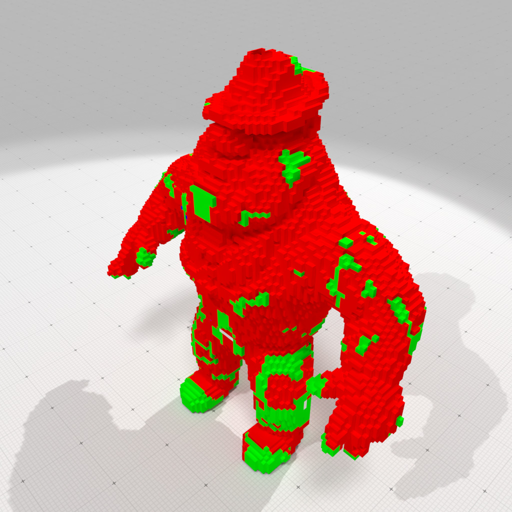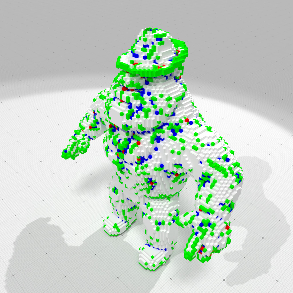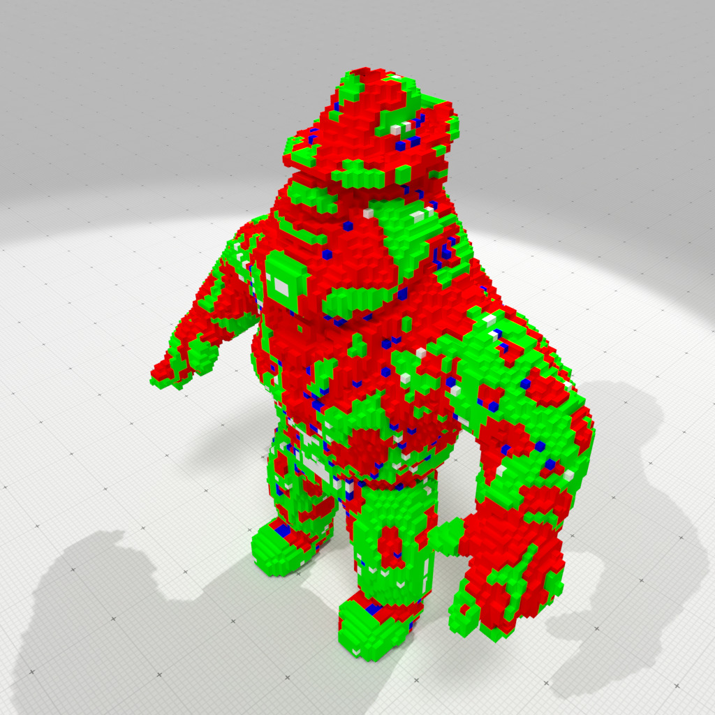 The result is saved in 'geom-scale-cvx.obj'. You will obtain images like below, where green means convex, blue means concave, white is planar and red is atypical (see [75] for details).