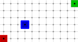The following code snippet defines three points and a rectangular domain in Z2. It then displays them in a Board2D object. The two last commands export the graphics in SVG and EPS format. The full code is in dgtalBoard2D-1-points.cpp.