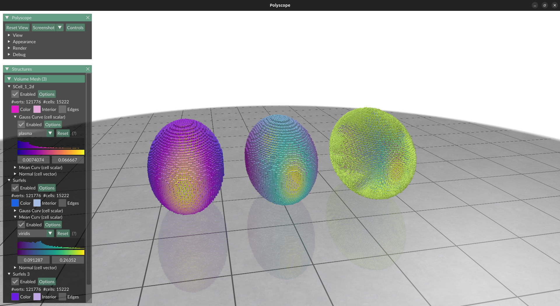 The class PolyscopeViewer is a wrapper around the Polyscope library ( https://polyscope.run ).