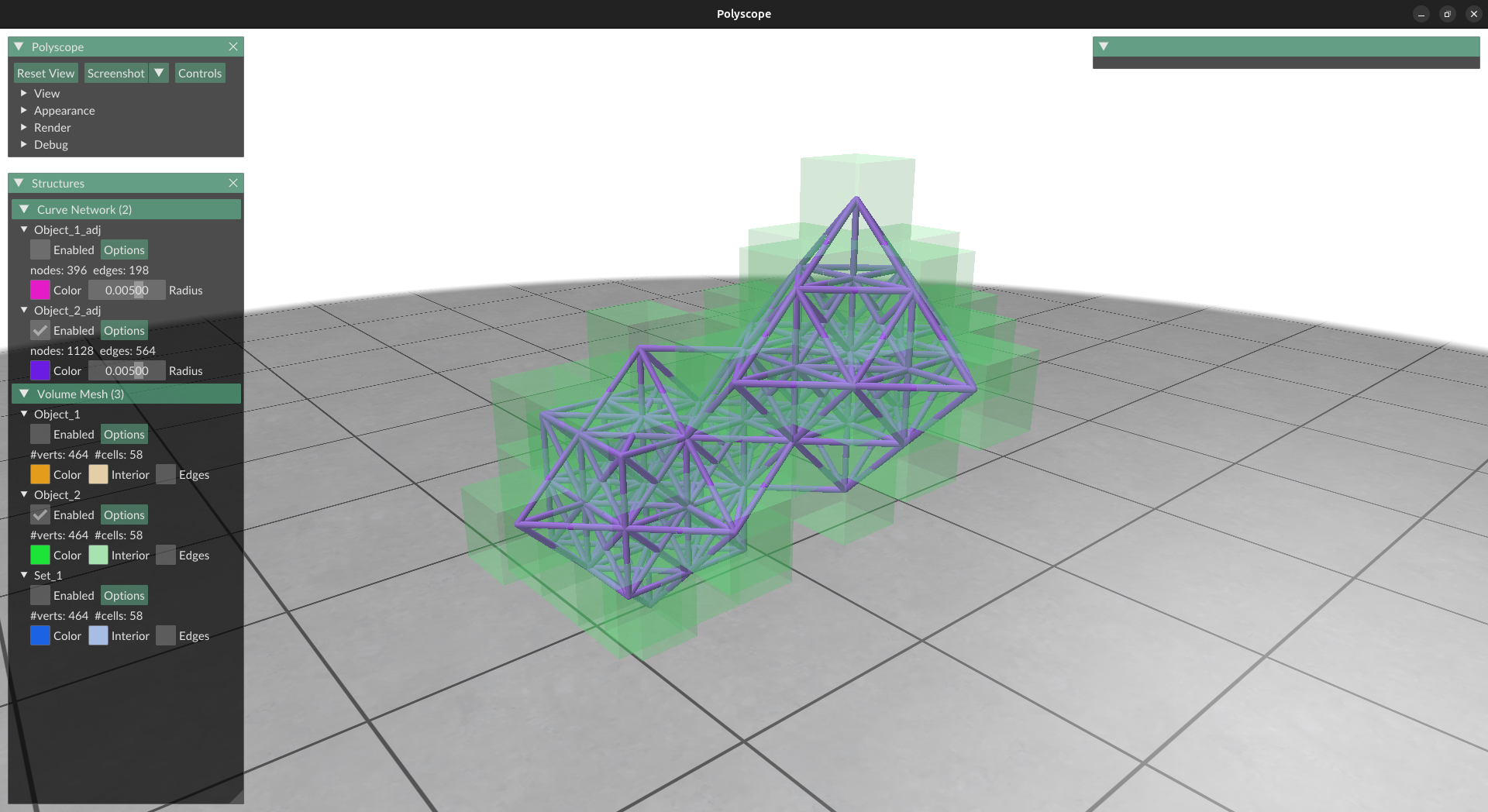 The semi-abstract template class Display3D defines the stream mechanism to display 3d primitive (like PointVector, DigitalSetBySTLSet, Object ...). The PolyscopeViewer class permits an interactive visualization (based on Polyscope (OpenGL backend)).