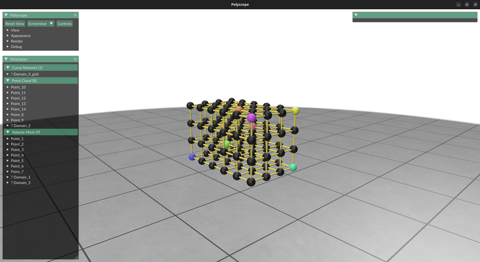 The viewer can also display other standard primitives, like ball using the polyscope steps. For instance, to display a set of ball with different radius, you can follows these steps: