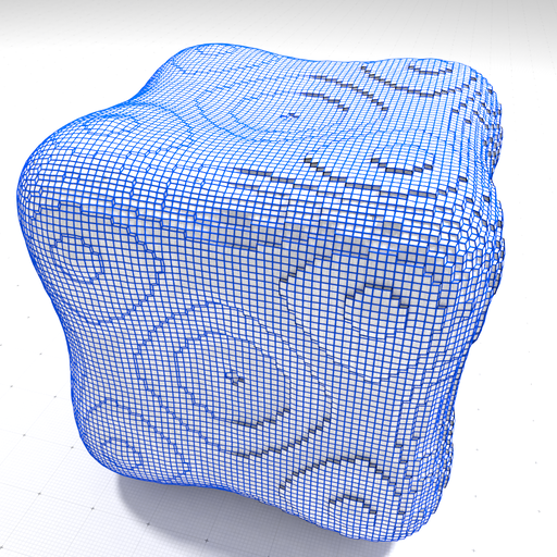 Note that the user can specify the number of steps of the gradient descent as well as the initial learning rate. Note that if the DigitalSurfaceRegularization::regularize() method is called another time, the descent starts from the previous results (aka warm restart). Using the default settings (and the trivial normal vectors), we obtain the following reconstruction.