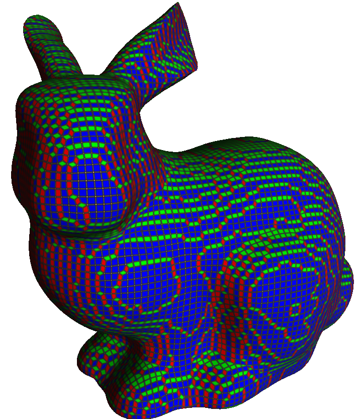 This is done by minimizing a quadratic energy function as decribed in ??. The variational formulation regularizes the position while aligning the regularized quads with an input normal vector field. In this tool, the input normal vector field can be either specified in the CSV input file, or computed using Integral Invariant (and -r option).
