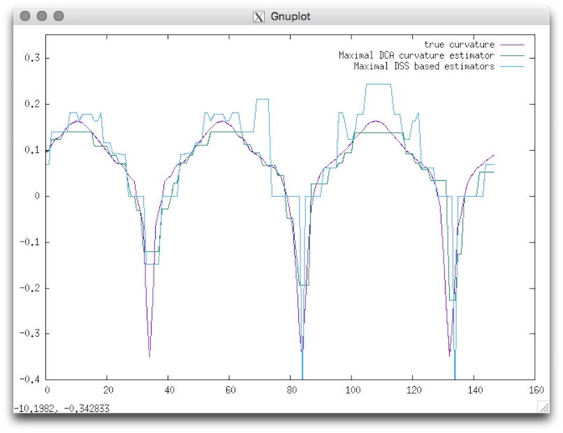 gnuplot> plot [][-0.4:0.35] 'curvature_True_curvature.dat' w lines title "true curvature" , 'curvature_MDCA_curvature.dat' w lines title "Maximal DCA curvature estimator", 'curvature_MDSSl_curvature.dat' w lines title "Maximal DSS based estimators"