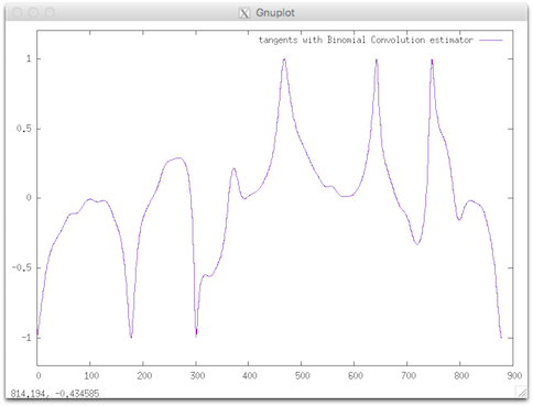 gnuplot> plot [] [-1.2:1.2]'tangentsBC.dat' using 1:3 w lines title "tangents with Binomial Convolution estimator"